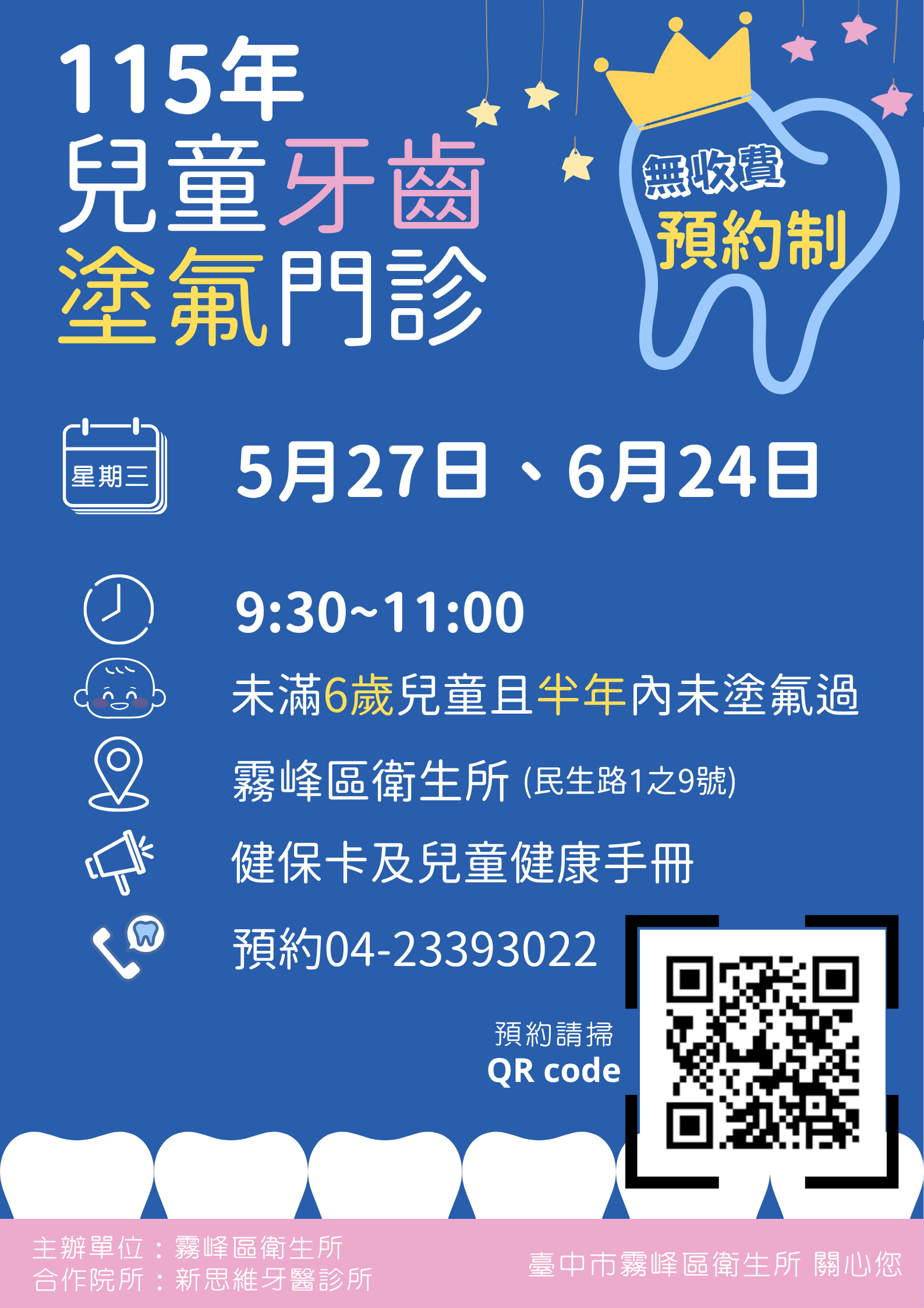 #預約專線:04-23393022(星期一至星期五上午8:00-下午5:00)或使用QR碼預約